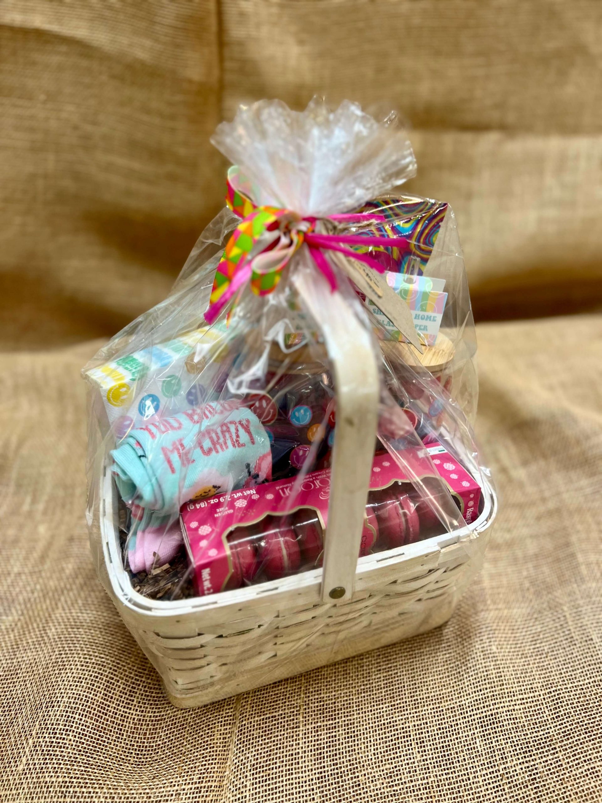 These are questions we would ask ourselves when trying to find ‘just that right gift” and spend hours fretting over it. This is why we started Tisket-A-Tasket-Baskets – a Custom Gift basket company. We want to help you create a personalized gift giving experience that creates lasting memories for the person who receives the basket. We want your gift receiver to be talking about the gift long after you gave it to them. We help to make gift giving fun and unique. You let us take care of the gift selection, preparation, presentation and delivery.